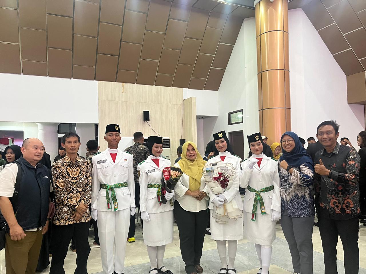 Kepala SMKN 9 Kabupaten Tangerang, Ibu Evi Resti Rahmayani, hadir langsung untuk memberikan dukungan dan kebanggaan kepada para siswa, didampingi oleh Wakil Kepala Sekolah Bidang Kesiswaan, Memed Sumaedi, serta Pembina Paskibra sekolah, Riki Andriansyah.